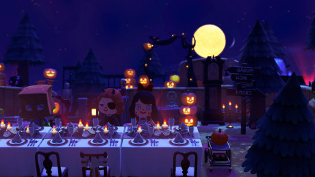 자연과 팬더에 둘러싸인 할로윈 분위기의 꿈번지